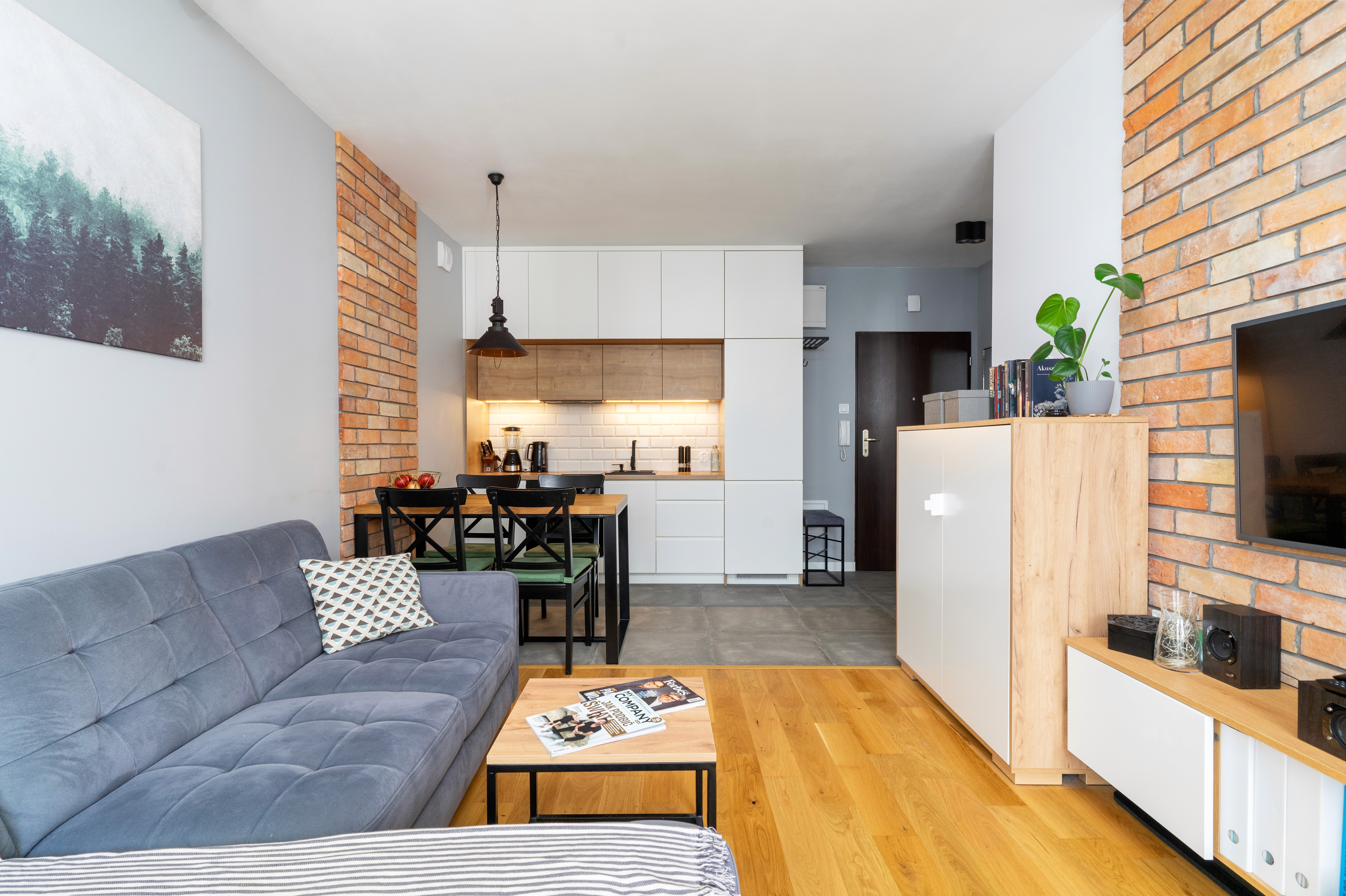 Zadbano również o komfort użytkowania – zastosowano podłogę wielowarstwową na podłożu korkowym, która jest cicha i przyjemna w codziennym użytkowaniu. Całość uzupełniło pełne wyposażenie i podłączenie sprzętów RTV i AGD, dzięki czemu przestrzeń była gotowa do zamieszkania od pierwszego dnia.