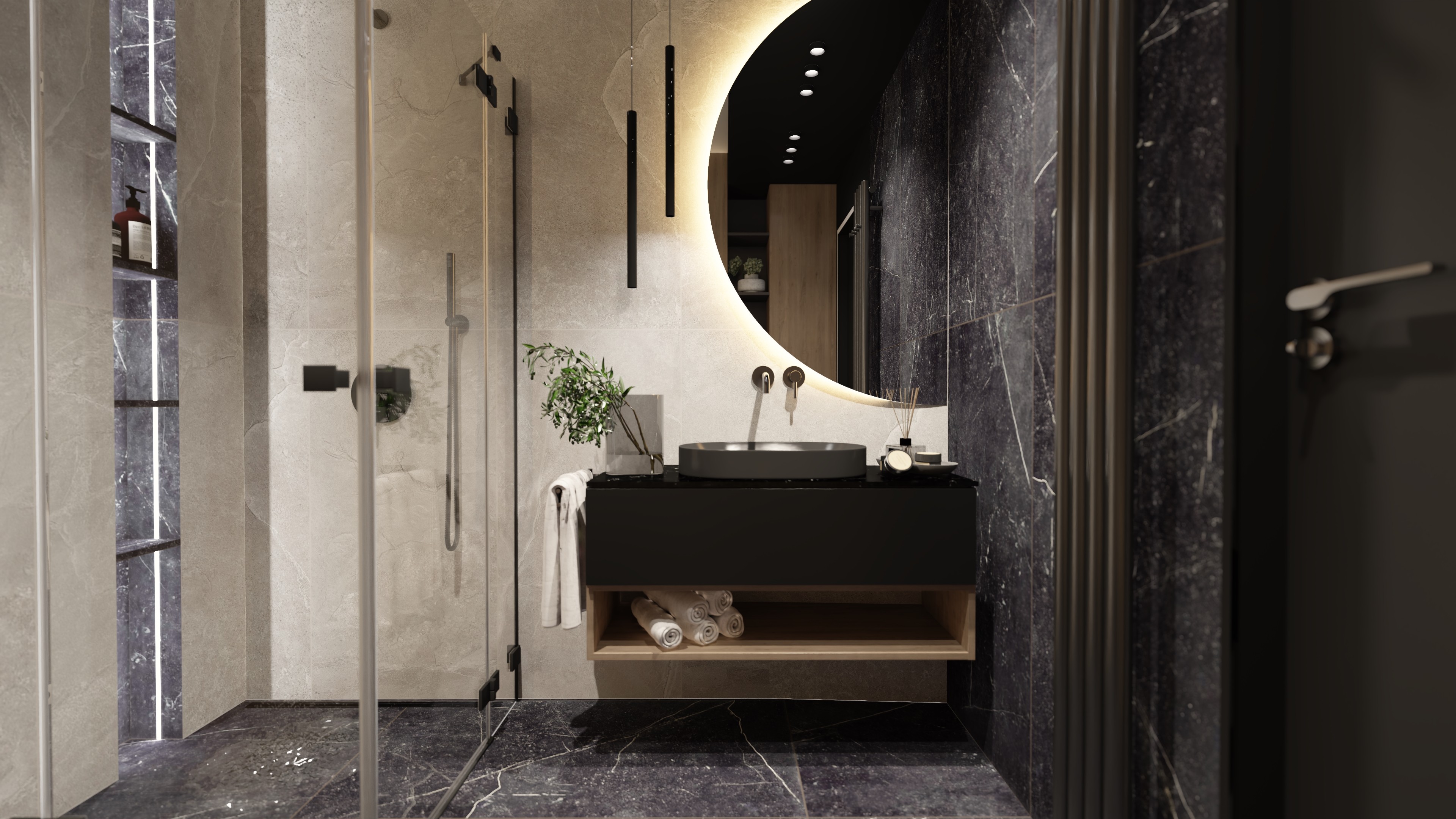 Dużą wagę przyłożono do detali – designerskie oświetlenie, wyraziste grzejniki, dopracowana armatura oraz starannie dobrane meble wolnostojące tworzą spójną, dopracowaną całość i nadają przestrzeni indywidualnego stylu. Całość została zrealizowana we współpracy z doświadczonym projektantem, co pozwoliło zachować wysoką jakość przy rozsądnym budżecie.